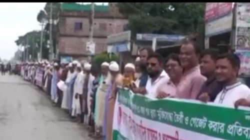 কুড়িগ্রামে জেলার নাগেশ্বরী উপজেলা ভূয়া মুক্তিযুদ্ধা বিরোধী মানববন্ধন।