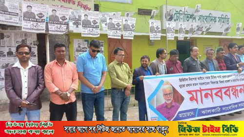 সময় টিভির বার্তা প্রধানের বিরুদ্ধে মিথ্যা মামলার প্রতিবাদে ঝালকাঠিতে মানববন্ধন অনুষ্ঠিত।
