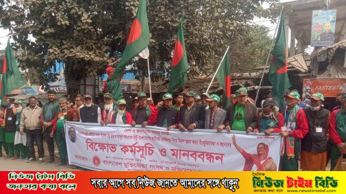 স্বাধীনতা ও সংবিধান নিয়ে বিরূপ মন্তব্যের প্রতিবাদে শ্যামনগরে মুক্তিযোদ্ধাদের বিক্ষোভ ও মানববন্ধন।