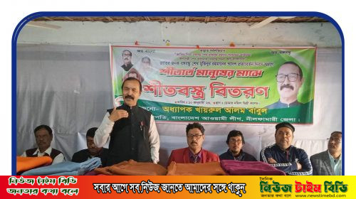 নীলফামারী ডোমারে শীতার্ত মানুষের মাঝে শীতবস্ত্র বিতরণ।