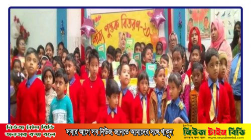 ঝিকরগাছায় শিক্ষার্থীদের মাঝে নতুন পাঠ্যপুস্তক বিতরণ।