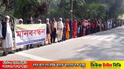 ঝালকাঠিতে প্রধান শিক্ষকের নিয়োগ বানিজ্য’র প্রতিবাদে মানববন্ধন।