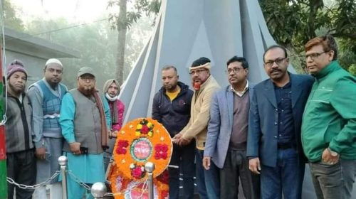 শ্যামনগর উপজেলা প্রেসক্লাবের পক্ষ থেকে মহান বিজয় দিবসে শহীদদের স্মরণে পুষ্পস্তবক অর্পণ
