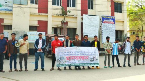 শ্যামনগর হাসপাতালের ঝুঁকিপূর্ণ ভবন অপসারণ এবং পুনঃনির্মাণ করার দাবিতে মানববন্ধন ।