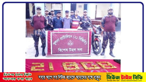 যশোর শার্শা কায়বা সামান্ত থেকে ১৩ কেজি ১৪৩ গ্রাম ওজনের ৬১টি সোনার বারসহ তিন পাচারকারী আটক।