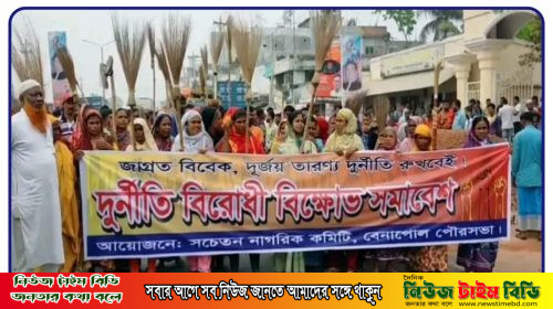 বেনাপোলে সাবেক মেয়র আশরাফুল আলম লিটন’র বিরুদ্ধে দূর্ণীতি বিরোধী বিক্ষোভ সমাবেশ।