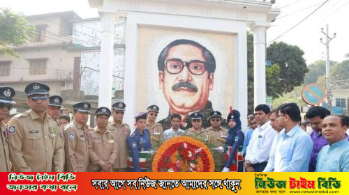 ঐতিহাসিক ৭ই মার্চ’ -এ জাতির পিতা বঙ্গবন্ধু শেখ মুজিবুর রহমানের প্রতিকৃতিতে সাতক্ষীরা পুলিশ সুপারের শ্রদ্ধা নিবেদন।