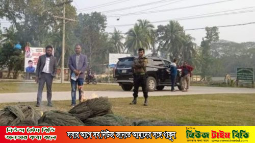 আগৈলঝাড়ায় বিপুল পরিমাণ অবৈধ জাল জব্দ ও খালের মধ্যে বাঁধ অপসারণ।