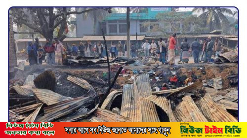 নওগাঁয় ভয়াবহ অগ্নিকাণ্ডে জাতীয় পার্টির অফিসসহ ৪ দোকান ভস্মীভূত।