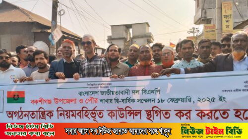 বকশীগঞ্জ ১৮ তারিখে উপজেলায় বিএনপির দ্বি- বার্ষিক সম্মেলন স্থগিতের দাবিতে বিক্ষোভ মিছিল।