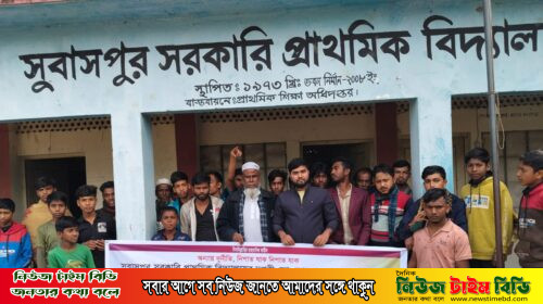 সুবাসপুর সরকারি প্রাথমিক বিদ্যালয়ের দপ্তরীকে অপসারণের দাবিতে এলাকাবাসীর মানববন্ধন।