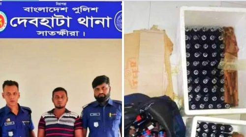 দেবহাটা থানা পুলিশের অভিযানে অভিনব কায়দায় ফেন্সিডিল বহনকালে ১২০ (একশত বিশ) বোতল ফেন্সিডিলসহ ১ জন মাদক ব্যবসায়ী গ্রেফতার ।।