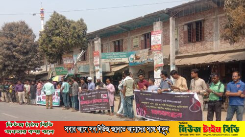 ধর্ষণ নিপীড়ন সহিংসতা বিরুদ্ধে ধর্ষকদের শাস্তি দাবিতে আক্কেলপুরে মানববন্ধন.