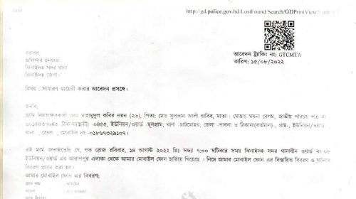 দৈনিক ক্রাইম তালাশ পত্রিকার প্রকাশ ও সম্পাদকের ব্যবহৃত মোবাইল হারিয়ে যাওয়ায় জিডি।