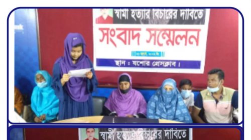 যশোরে স্বামী হত্যার বিচার দাবি সড়ক দুর্ঘটনা বলে `খুন ধামাচাপা’ প্রেসক্লাবে সংবাদ সন্মেলন।
