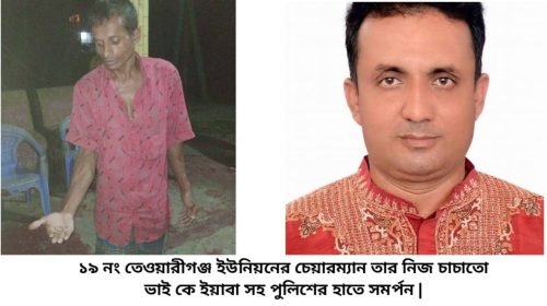 আপন চাচাতো ভাই কে ইয়াবাসহ পুলিশের কাছে সমর্পণ করলেন লক্ষীপুরের তেওয়ারীগঞ্জ ইউনিয়নের চেয়ারম্যান ।