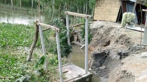 জয়পুরহাটের বটতলী বাজরে তুলসীগঙ্গা নদীর উপর লোহার ভাঙ্গা ব্রিজ।