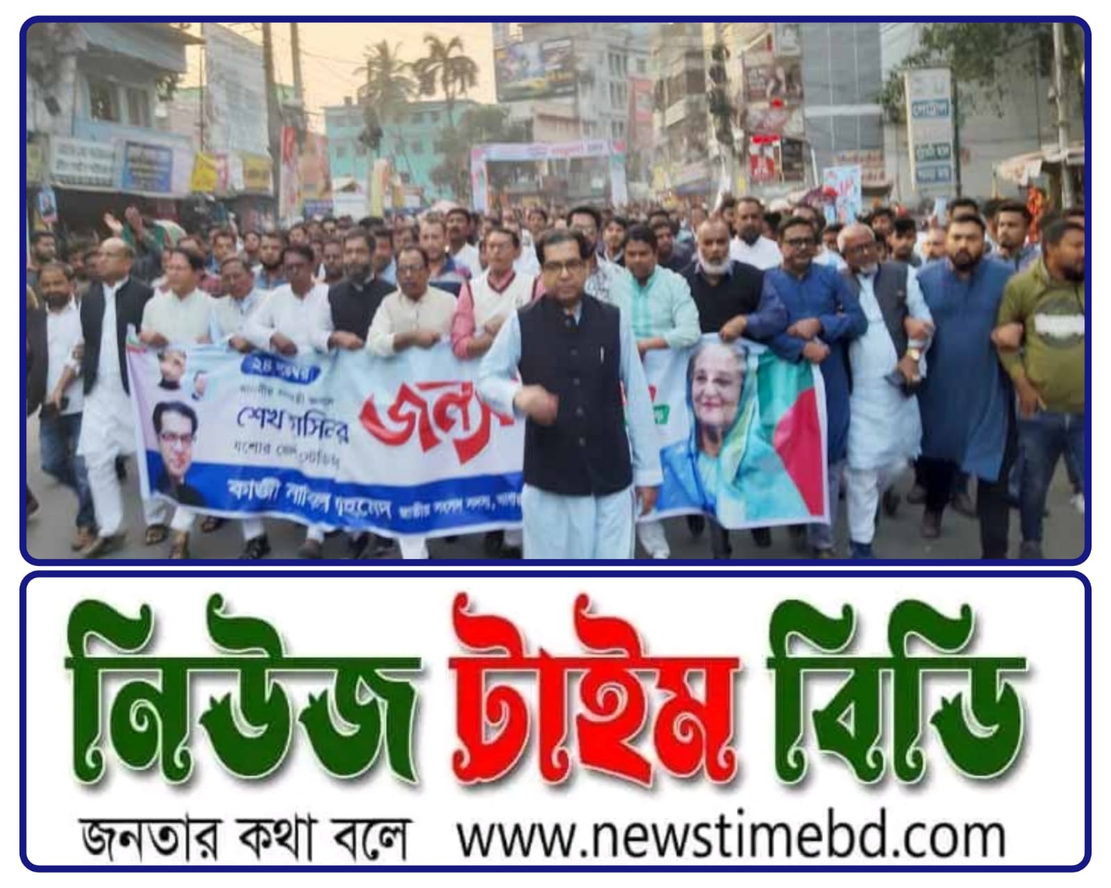 যশোর স্টেডিয়াম মাঠে বৃহস্পতিবার (২৪ নভেম্বর) শেখ হাসিনার জনসভা সফল করার লক্ষ্যে বিশাল প্রচার মিছিল করেছেন সংসদ সদস্য কাজী নাবিল আহমেদ।