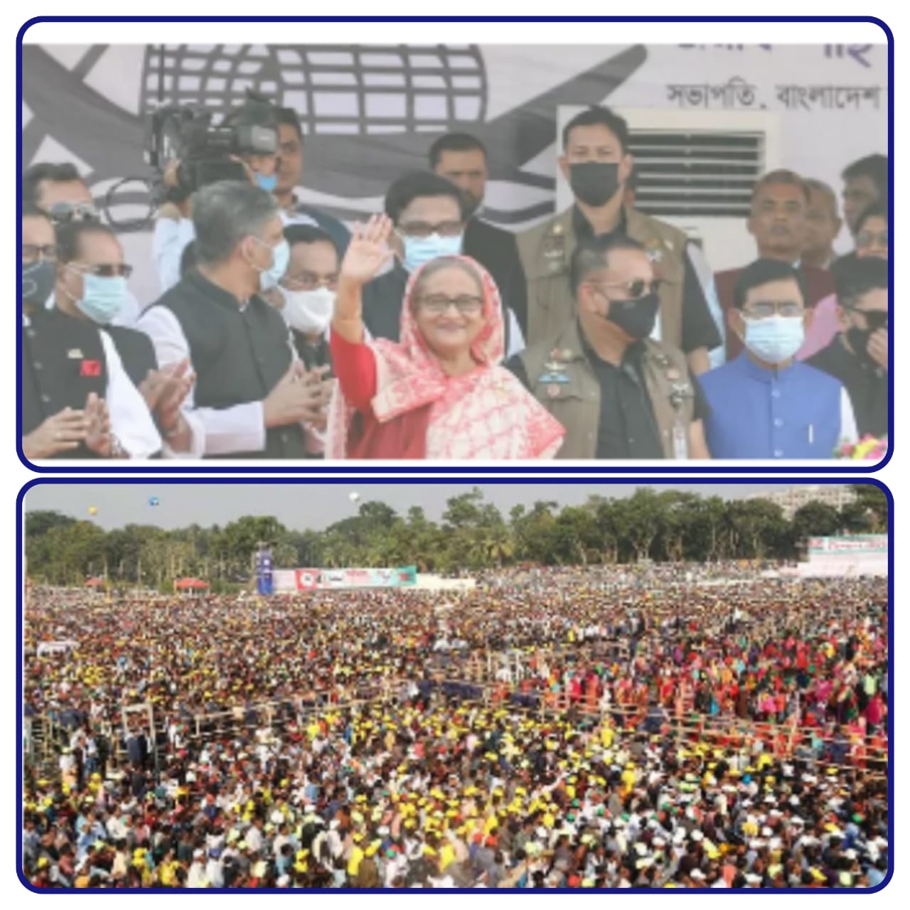 যশোর শামস্-উল হুদা স্টেডিয়ামে আওয়ামী লীগের সভাপতি ও প্রধানমন্ত্রী শেখ হাসিনার জনসভা শুরু হয়েছে। শুধু স্টেডিয়ামের সভাস্থলই না; যশোর শহর জনসমুদ্রে পরিণত হয়েছে। বেলা তিনটার কিছু আগে প্রধানমন্ত্রী জনসভার মঞ্চে উপস্থিত হন।