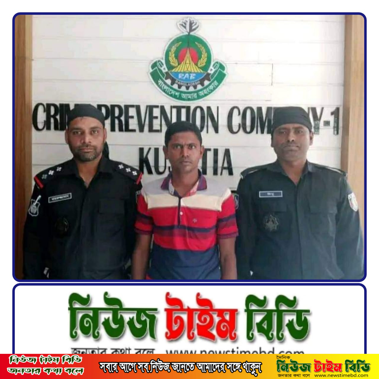 প্রাপ্ত তথ্যে জানা গেছে র্যাব-১২, সিপিসি-১, কুষ্টিয়া ক্যাম্পের কোম্পানী কমান্ডার স্কোয়াড্রন লীডার মোহাম্মদ ইলিয়াস খান এর নেতৃত্বে একটি চৌকষ আভিযানিক দল অদ্য ২১ ডিসেম্বর ২০২২ইং…. তারিখ দুপুর ১২:৫৫ ঘটিকার সময় ‘‘কুষ্টিয়া জেলার সদর থানাধীন কেন্দ্রীয় বাস টার্মিনাল এলাকায়’’ একটি মাদক বিরোধী অভিযান পরিচালনা করে। উক্ত অভিযানে ৩০০ গ্রাম গাঁজা, যাহার আনুমানিক মূল্য ৬,০০০/-(ছয় হাজার) টাকা সহ ০১ জন আসামি বাবু দফাদার(৩০), পিতা-মৃত মুক্তার দফাদার, সাং-ফিলিপনগর (গোলাবাড়ী), থানা-দৌলতপুর, জেলা-কুষ্টিয়া’কে গ্রেফতার করে। পরবর্তীতে ধৃত আসামির বিরুদ্ধে কুষ্টিয়া জেলায় সদর থানায় মাদক আইনে একটি মামলা দায়ের করা হয়েছে এবং উদ্ধারকৃত আলামতসহ ধৃত আসামিকে কুষ্টিয়া জেলার সদর থানায় সোপর্দ করা হয়েছে। উল্লেখ্য যে, এই ধরণের মাদক বিরোধী অভিযান অব্যাহত রেখে মাদকমুক্ত সোনার বাংলা গঠনে র্যাব-১২, সিপিসি-১, কুষ্টিয়া বদ্ধপরিকর। র্যাব-১২, সিপিসি-১, কুষ্টিয়া’কে তথ্য দিন, মাদক, অস্ত্র ও জঙ্গীমুক্ত বাংলাদেশ গঠনে অংশ নিন।