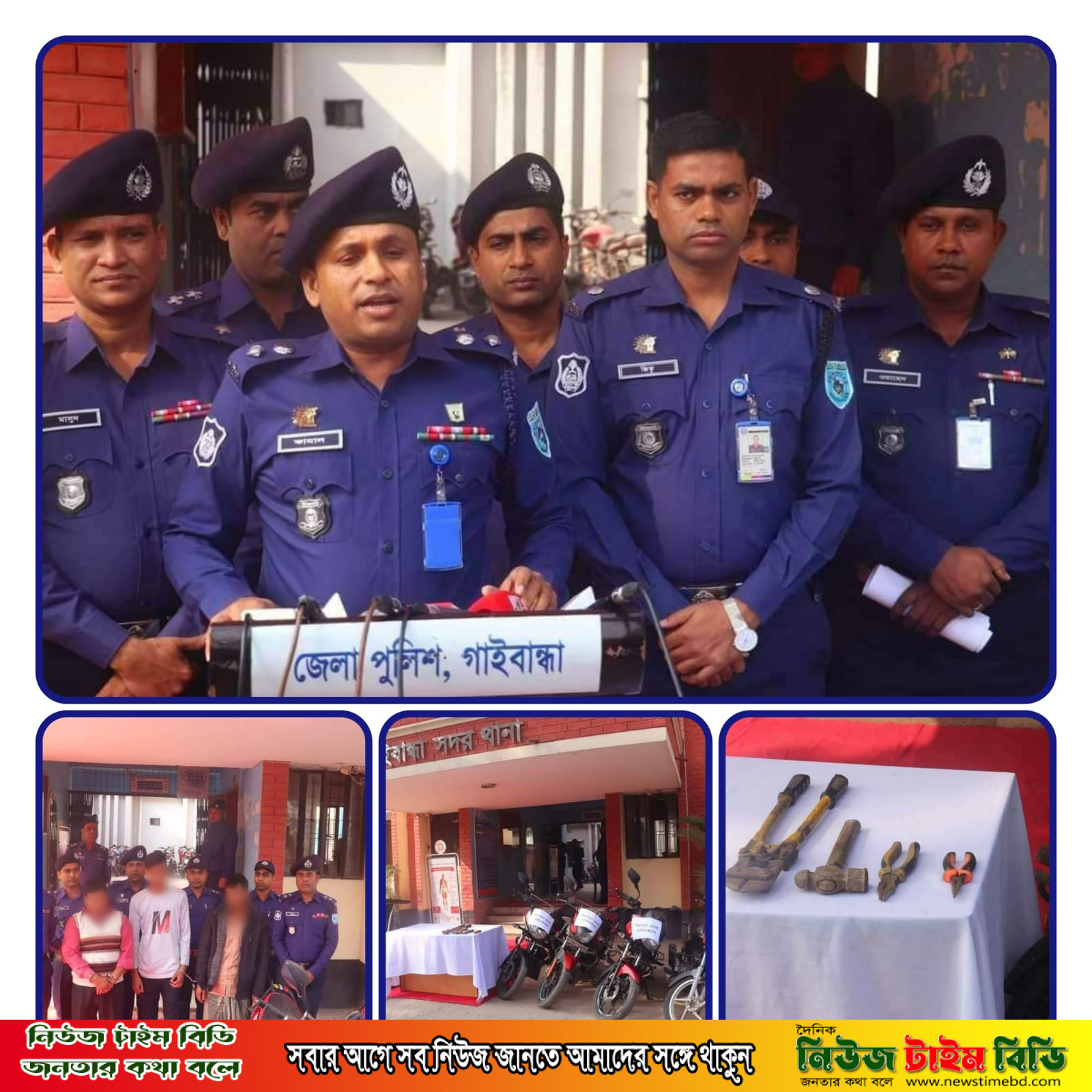 গাইবান্ধায় বিভিন্ন স্থানে অভিযান চালিয়ে মোটরসাইকেল চোর চক্রের তিন সদস্যকে আটক করেছে সদর