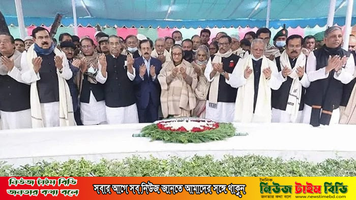 আওয়ামী লীগের নবগঠিত কেন্দ্রীয় কমিটির নেতাদের নিয়ে বঙ্গবন্ধু শেখ মুজিবুর রহমানের সমাধিতে শ্রদ্ধা জানিয়েছেন প্রধানমন্ত্রী শেখ হাসিনা। আজ শনিবার দুপুরে টুঙ্গিপাড়াস্থ বঙ্গবন্ধুর সমাধিতে ফুল দিয়ে শ্রদ্ধা জানান তিনি। পরে বঙ্গবন্ধু ও পরিবারের সদস্যদের রুহের আত্মার মাগফিরাত কামনা করে বিশেষ মোনাজাতে অংশ তিনি। এ সময় কিছুক্ষণ নীরবে দাঁড়িয়ে থাকেন প্রধানমন্ত্রী। নবগঠিত জাতীয় পরিষদ, কেন্দ্রীয় আওয়ামী লীগের কার্যনির্বাহী কমিটি এবং উপদেষ্টা পরিষদের সদস্যসহ তৃণমূলের নেতাকর্মীরা উপস্থিত ছিলেন।