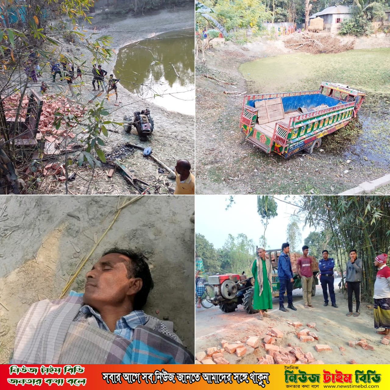 কুড়িগ্রামের উলিপুরে গরু বোঝাই নছিমন ও ইট বহনকারী ট্রলির মুখোমুখি