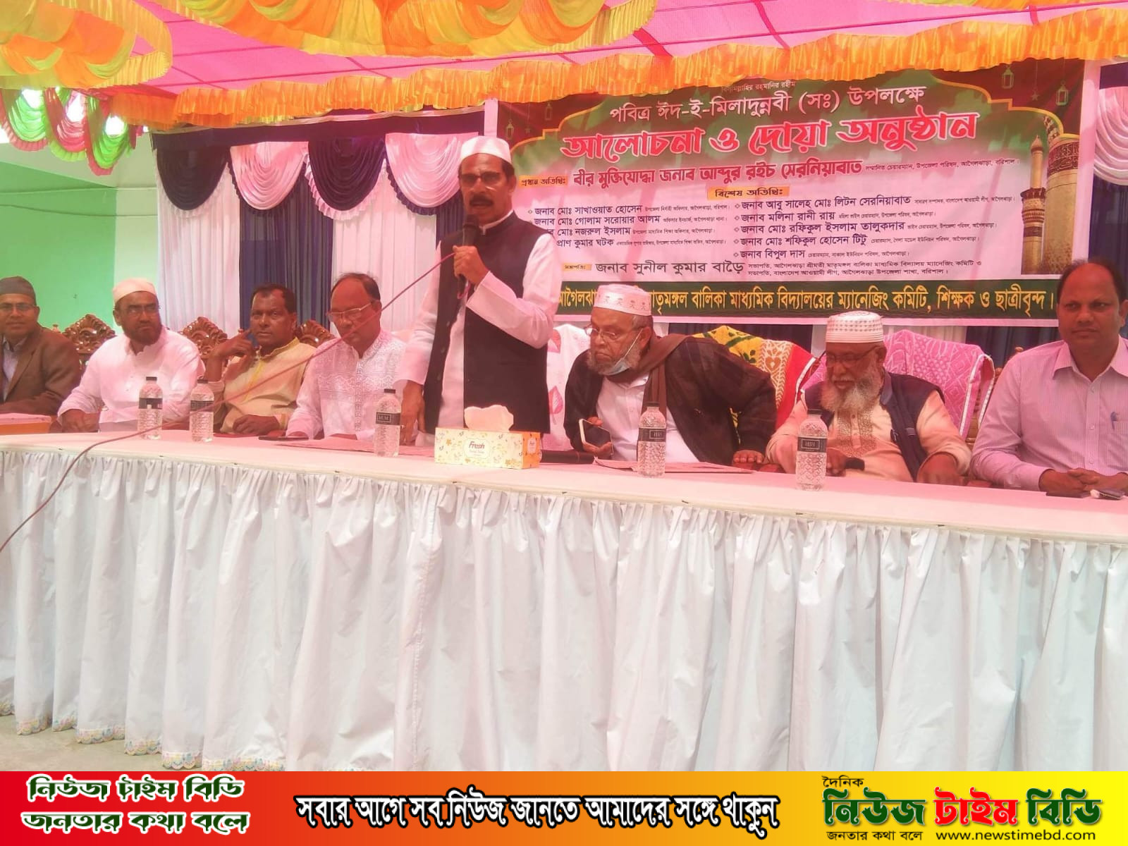 বরিশাল জেলার আগৈলঝাড়ায় পবিত্র ঈদে মিল্লাদুন্নবী (সা.) উদযাপন উপলক্ষে আলোচনা সভা ও দোয়া মাহফিল অনুষ্ঠিত হয়েছে।শ্রীমতি মাতৃমঙ্গল বালিকা মাধ্যমিক বিদ্যালয়ের উদ্যোগে, ধর্মীয় ভাবগাম্ভীর্যের সঙ্গে পবিত্র ঈদে মিলাদুন্নবী (সা.) পালনে বুধবার সকাল ১০টায় শ্রীমতি মাতৃমঙ্গল বালিকা মাধ্যমিক বিদ্যালয়ের মিলনায়তনে মহানবী হযরত মোহাম্মদ (সা.)-এর জীবনীর ওপর আলোচনা সভা, দোয়া মাহফিল অনুষ্ঠিত হয়।আলোচনা সভায় আগৈলঝাড়া শ্রীমতি মাতৃমঙ্গল বালিকা মাধ্যমিক বিদ্যালয় ও বাংলাদেশ আওয়ামীলীগ আগৈলঝাড়া উপজেলা শাখার সম্মানিত সভাপতি বাবু সুনীল কুমার বাড়ৈর সভাপতিত্বে অনুষ্ঠানে প্রধান অতিথি হিসেবে বক্তব্য রাখেন আগৈলঝাড়া উপজেলার সম্মানিত উপজেলা চেয়ারম্যান বীর মুক্তিযোদ্ধা জনাব আব্দুর রইচ সেরনিয়াবাত।বিশেষ অতিথি হিসেবে বক্তব্য রাখেন উপজেলা নির্বাহী অফিসার জনাব মোঃ সাখাওয়াত হোসেন,