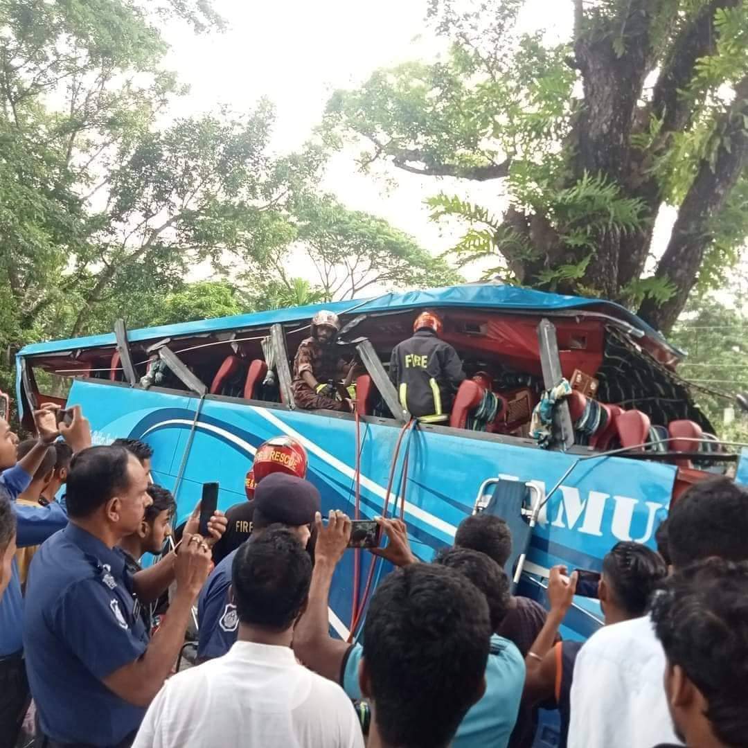 বরিশালের উজিরপুরে বরিশাল-ঢাকা মহাসড়কে যমুনা লাইন পরিবহণের একটি বাস নিয়ন্ত্রণ হারিয়ে গাছের সঙ্গে ধাক্কা লেগে ১০ জন যাত্রী নিহত হয়েছেন। নিহতদের মধ্যে শিশু ও নারীরাও রয়েছে। এ ঘটনায় আরও ২৫ যাত্রী আহত হয়েছেন। রবিবার (২৯ মে) ভোর ৪.৩০ ঘটিকার দিকে উজিরপুরের সানুহার নামক স্থানে এ দুর্ঘটনা ঘটে। দুর্ঘটনায় নিহত ১০ জনের মধ্যে ছয় জনের পরিচয় পাওয়া গেছে। তারা হলেন- ঝালকাঠি সদর উপজেলার নৈকাঠী গ্রামের আরাফাত হোসেন (৯), পিরোজপুরের মঠবাড়িয়া উপজেলার নুরুল ইসলাম আকন (৩৫), একই উপজেলার রাকিব আকনের স্ত্রী আনোয়ারা বেগম (৩২), বরগুনার বেতাগী উপজেলার কাদিরাবাদ গ্রামের হালিম মিয়া (৩১), ফরিদপুরের নগরকান্দা উপজেলার আওলাদ মোল্লার ছেলে সান্টু মোল্লা (৫০) এবং বরিশালের বাকেরগঞ্জ উপজেলার সুন্দরকাঠী গ্রামের মো. রমজান (৩৮)। উজিরপুর মডেল থানার অফিসার ইনচার্জ (ওসি) আলী আরশাদ নিহত এই ছয় জনের পরিচয় নিশ্চিত করে বলেছেন স্বজনদের কাছে তাদের লাশ হস্তান্তরের প্রক্রিয়া চলছে। ওসি আলী আরশাদ বলেন, ঢাকা থেকে যাত্রী নিয়ে শনিবার রাতে পিরোজপুরের ভান্ডারিয়ার উদ্দেশ্যে ছেড়ে আসে যমুনা লাইন পরিবহনের একটি বাস। উজিরপুরের সানুহার এলাকা অতিক্রমকালে নিয়ন্ত্রণ হারিয়ে মহাসড়কের পাশে থাকা গাছের সঙ্গে ধাক্কা লেগে বাসটির সামনের অংশ দুমড়ে-মুচড়ে যায়। খবর পেয়ে পুলিশ ও ফায়ার সার্ভিসের দুটি ইউনিট এসে বাসের ভেতর থেকে আট যাত্রীর মরদেহ উদ্ধার করে। আহত ১৮-২০ জনকে উদ্ধার করে উপজেলা স্বাস্থ্য কমপ্লেক্স ও বরিশাল শের-ই-বাংলা মেডিকেলে কলেজ হাসপাতালে পাঠানো হয়। ওসি আলী আরশাদ আরও বলেন, সকাল সোয়া ৯টার দিকে দুর্ঘটনাস্থলের পাশের ডোবা থেকে আরও এক জনের মরদেহ উদ্ধার করা হয়েছে। এছাড়া বরিশাল হাসপাতালে চিকিৎসাধীন অবস্থায় আহত আরেক বাসযাত্রীর মৃত্যু হয়েছে বলে খবর পাওয়া গেছে। এ নিয়ে দুর্ঘটনায় নিহতের সংখ্যা ১০ জনে দাঁড়িয়েছে। হতাহতদের নাম-পরিচয় জানার চেষ্টা চলছে। গাড়িটি উদ্ধারে ফায়ার সার্ভিসের দুটি ইউনিট কাজ করছে। বরিশাল ফায়ার সার্ভিসের ইউনিট লিডার মো. জাহাঙ্গীর বলেন, দুর্ঘটনার খবর পেয়ে ফায়ার সার্ভিসের গৌরনদী ও উজিরপুর থেকে দুটি ইউনিট ঘটনাস্থলে গিয়ে উদ্ধারকাজ চালাচ্ছে।