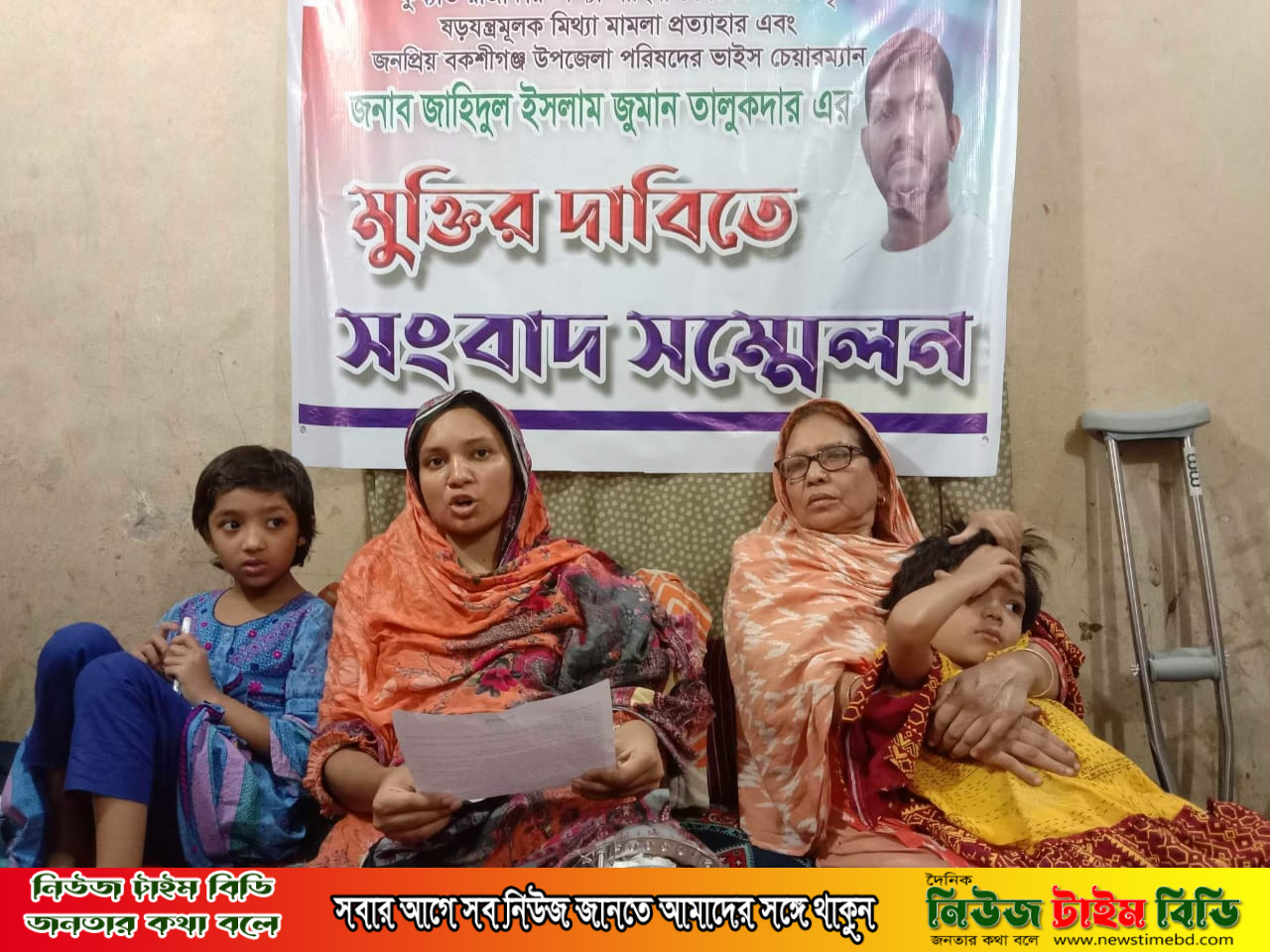 বৃহস্পতিবার (২৩ ফেব্রুয়ারি) দুপুর ১ টায় বকশীগঞ্জ পৌর শহরের মালিবাগ এলাকায় জুমান তালুকদারের নিজ বাড়িতে মামলা প্রত্যহার ও মুক্তির দাবিতে সংবাদ সম্মেলন করেন।