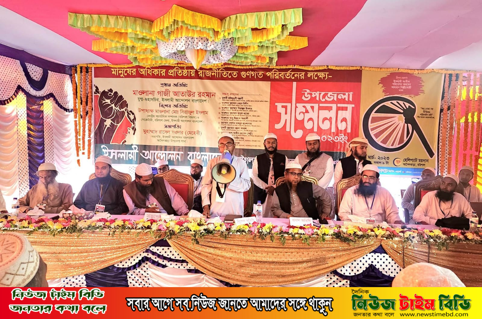 মানুষের অধিকার প্রতিষ্ঠায় রাজনীতিতে গুনগত পরিবর্তন এর লক্ষ্যে কাজ করে যাচ্ছে ইসলামী আন্দোলন বাংলাদেশ। অদ্য ৪ঠা মার্চ রোজ শনিবার ইসলামী আন্দোলন বাংলাদেশ আগৈলঝাড়া উপজেলা শাখা এর উদ্যেগে এক বিশাল উপজেলা সম্মেলন অনুষ্ঠিত হয়েছে। উক্ত অনুষ্ঠানে প্রধান অতিথি হিসেবে উপস্থিত ছিলেন ইসলামী আন্দোলন বাংলাদেশ এর কেন্দ্রীয় যুগ্ন মহাসচিব গাজী আতাউর রহমান। বিশেষ অতিথি হিসেবে ছিলেন ইসলামী আন্দোলন বাংলাদেশ বরিশাল জেলা শাখার সাধারণ সম্পাদক উপাধ্যক্ষ মাওলানা সিরাজুল ইসলাম। সম্মেলনে ইসলামী আন্দোলন বাংলাদেশ আগৈলঝাড়া উপজেলা শাখা ও বিভিন্ন অঙ্গসঙ্গঠনের নেতৃবৃন্দ বক্তব্য প্রদান করেন। উপজেলা সম্মেলনের সভাপতিত্বে ছিলেন ইসলামী আন্দোলন বাংলাদেশ আগৈলঝাড়া উপজেলা শাখার সভাপতি মো: রাসেল সরদার মেহেদি। সম্মেলনের শেষে প্রধান অতিথি আগৈলঝাড়া উপজেলার সাবেক কমিটি বিলুপ্ত ঘোষনা করে নতুন কমিটির ঘোষনা করেন। নবাগত কমিটিতে সকলের লিখিত মতামতের মাধ্যমে সভাপতি মো: রাসেল সরদার মেহেদি ও সাধারণ সম্পাদক মো: গোলাম মাহমুদ নির্বাচিত হন।
