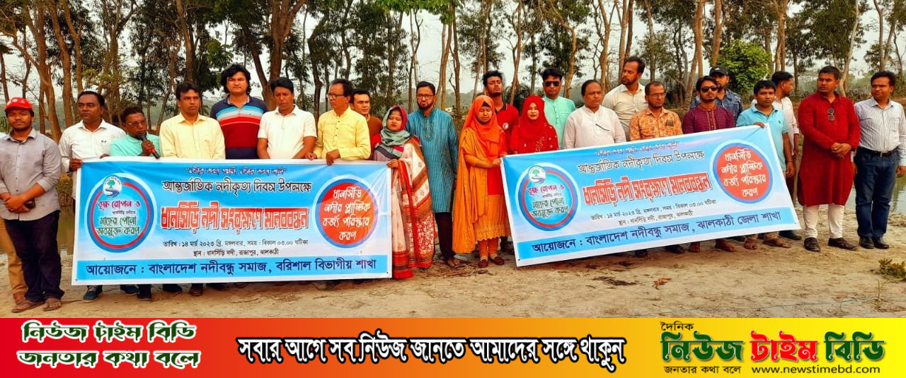 ঝালকাঠির রাজাপুরে আন্তর্জাতিক নদীকৃত্য দিবসে ধানসিঁড়ি নদীতে মাছের পোনা অবমুক্ত, ধানসিড়ি নদীর তীরে গাছের চারা রোপন, নদীর প্লাস্টিক বজ্য পরিষ্কার ও ধানসিড়ি নদী রক্ষার দাবিতে মানববন্ধন করা হয়েছে।