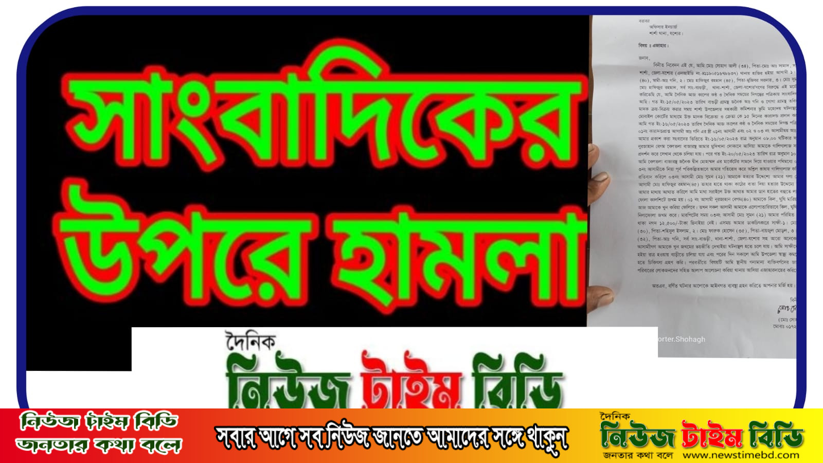 যশোরের শার্শা উপজেলার বাগুড়ী গ্রামের মাদক (গাঁজা) বিক্রয়ের সময় আব্দুল গনি নামে একজন মাদক ব্যাবসায়ীকে উপজেলা নির্বাহী ম্যাজিস্ট্রেটের মাধ্যমে ১৫ দিন কারাদণ্ড প্রদানের তথ্য সংগ্রহ করে সংবাদ প্রকাশের জেরে দৈনিক আজকালের কন্ঠ, ও দৈনিক সময়ের দিগন্ত পত্রিকার শার্শা উপজেলা প্রতিনিধি মোঃ সোহাগ আলীর উপরে হামলা ঘটনায় তিনজনের নাম উল্লেখ করে এজাহার দায়ের করা হয়। ওই ঘটনায় মোছাঃ নুরজাহান বেগম (৪০) নামে এক জনকে আটক করেছে পুলিশ।