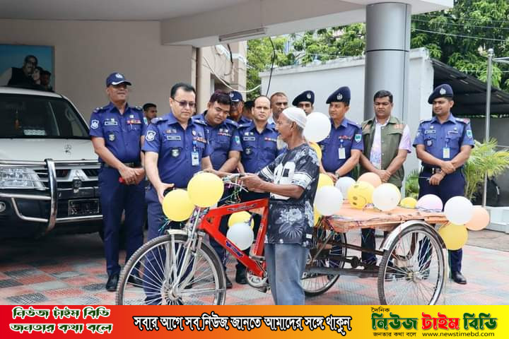 অদ্য ২৬ জুন ২০২৩ খ্রিঃ তারিখে মাননীয় প্রধানমন্ত্রী শেখ হাসিনা এমপি মহোদয়ের সোনার বাংলা গড়ার অংশ হিসেবে পুলিশ সুপার,সাতক্ষীরার উদ্যোগে সাতক্ষীরা সদর থানাধীন মুন্সিপাড়া গ্রামের অসহায়, হতদরিদ্র মোঃহযরত আলীকে স্বাবলম্বী করার লক্ষ্যে ভ্যান গাড়ি প্রদান করেন সাতক্ষীরা জেলার সুযোগ্য পুলিশ সুপার জনাব কাজী মনিরুজ্জামান পিপিএম।ভ্যান গাড়িটি পেয়ে অসহায় মোঃহযরত আলী আবেগাপ্লুত হয়ে পড়েন এবং পুলিশ সুপার ও জেলা পুলিশ, সাতক্ষীরার প্রতি কৃতজ্ঞতা প্রকাশ করেন।