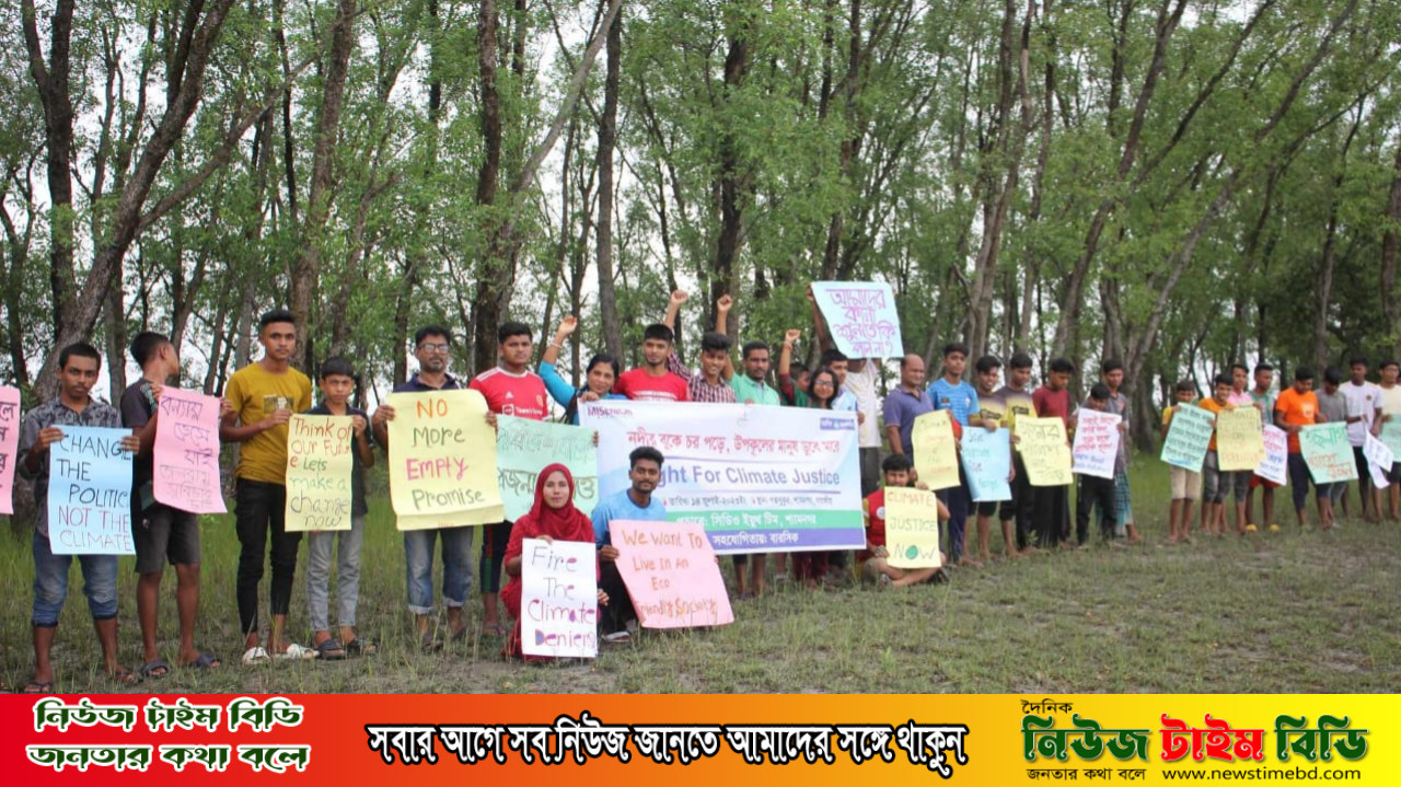 সাতক্ষীরার শ্যামনগরে জলবায়ু ক্ষতিপূরণের নায্য দাবী চেয়ে নদীর চরে বিক্ষোভ করেছে স্বেচ্ছাসেবী সংগঠন সিডিও ইয়ুথ টিমের সদস্যরা। শুক্রবার(১৪ জুলাই) বেলা ১১ টায় পদ্মপুকুর ইউনিয়ন সংলগ্ন খোলপেটুয়া নদীর মাঝখানে চরে নেমে বিক্ষোভ করেন এসমস্ত যুবরা।বেসরকারি উন্নয়ন সংস্থা বারসিকের সহযোগিতায় বিক্ষোভে বক্তারা বলেন, ধনী দেশের মানুষ আরাম করে, উপকূলের মানুষ ডুবে মরে।জলবায়ু পরিবর্তনের ফলে সবচেয়ে বেশি ক্ষতিগ্রস্ত দক্ষিণ পশ্চিমাঞ্চলের মানুষেরা।অথচ জলবায়ু ট্রাস্টের অর্থায়নে এই এলাকায় দৃশ্যমান কোন কাজ নেই।বিশ্বায়নের ফলে উপকূলের মানুষ প্রতিনিয়ত বিভিন্ন ধরনের দুর্যোগের কারণে নানাভাবে ক্ষতিগ্রস্ত হলেও তাদের ক্ষতিপূরন দেওয়ার ক্ষেত্রে কার্পণ্যতা লক্ষ্য করা যায়।ক্ষতিগ্রস্ত উপকূলের মানুষ বিভিন্ন সময়ে বিভিন্ন দাবি তুললেও তা ধনী দেশগুলোর কাছে পৌছাচ্ছে বলে মনে হয়না।বিশ্বায়নের ফলে প্রতিনিয়ত উপকূলের নদীগুলো ভরাট হলেও এটার প্রতিকারে কাউকে এগিয়ে আসতে দেখা যায় না।আমরা ত্রাণ নির্ভরশীল জাতি হতে চাইনা,আমরা চাই টেকসই সমাধান।আমাদের ক্ষতিপূরণ আমাদের বুঝিয়ে দিন।এসময় উপস্থিত ছিলেন
