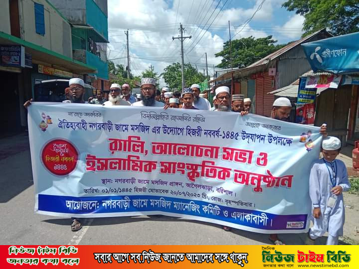 বরিশাল জেলার আগৈলঝাড়া উপজেলার ঐতিহ্যবাহী নগরবাড়ী কেন্দ্রীয় জামে মসজিদের উদ্যোগে হিজরী নববর্ষ -১৪৪৫ উদযাপন উপলক্ষে এক বিরাট র্র্যালির আয়োজন করা হয়, উক্ত র্র্যালি আগৈলঝাড়া উপজেলা চত্বর সহ বিভিন্ন পথ প্রদক্ষিণ করে নগরবাড়ী কেন্দ্রীয় জামে মসজিদ প্রাঙ্গনে গিয়ে সমাপ্ত করা হয়,পড়ে বিভিন্ন আয়োজনের মধ্য দিয়ে হিজরী নববর্ষ ১৪৪৫ উপলক্ষে ঐতিহ্যবাহী নগরবাড়ী কেন্দ্রীয় জামে মসজিদের উদ্যোগে আলোচনা সভা ও ইসলামিক সাংস্কৃতিক অনুষ্ঠানের আয়োজন করা হয়েছে, ০১/০১/১৪৪৫ হিজরী,মোতাবেক ২০/০৭/২০২৩ খ্রিঃ রোজ বৃহস্পতিবার, আয়োজনেঃ- নগরবাড়ী কেন্দ্রীয় জামে মসজিদ ম্যানেজিং কমিটি ও এলাকাবাসী।