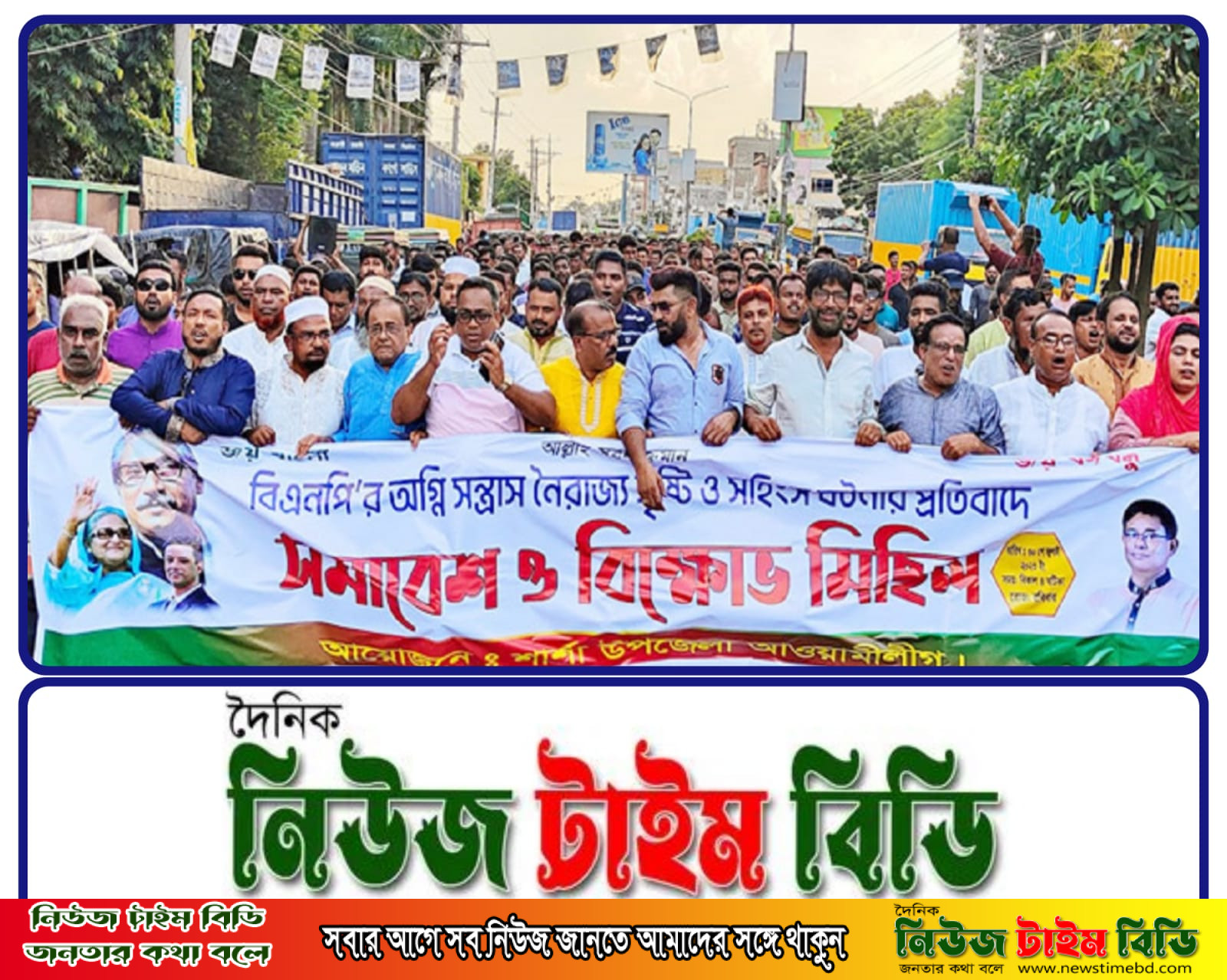 বিএনপির ‘অগ্নিসন্ত্রাসের’ বিরুদ্ধে রোববার (৩০ জুলাই)বিকাল সাড়ে ৫টার সময় সারাদেশের ন্যায় বন্দর নগরী বেনাপোলে প্রতিবাদ, বিক্ষোভ মিছিল ও সমাবেশ পালন করেছে শার্শা উপজেলা আওয়ামী লীগ।