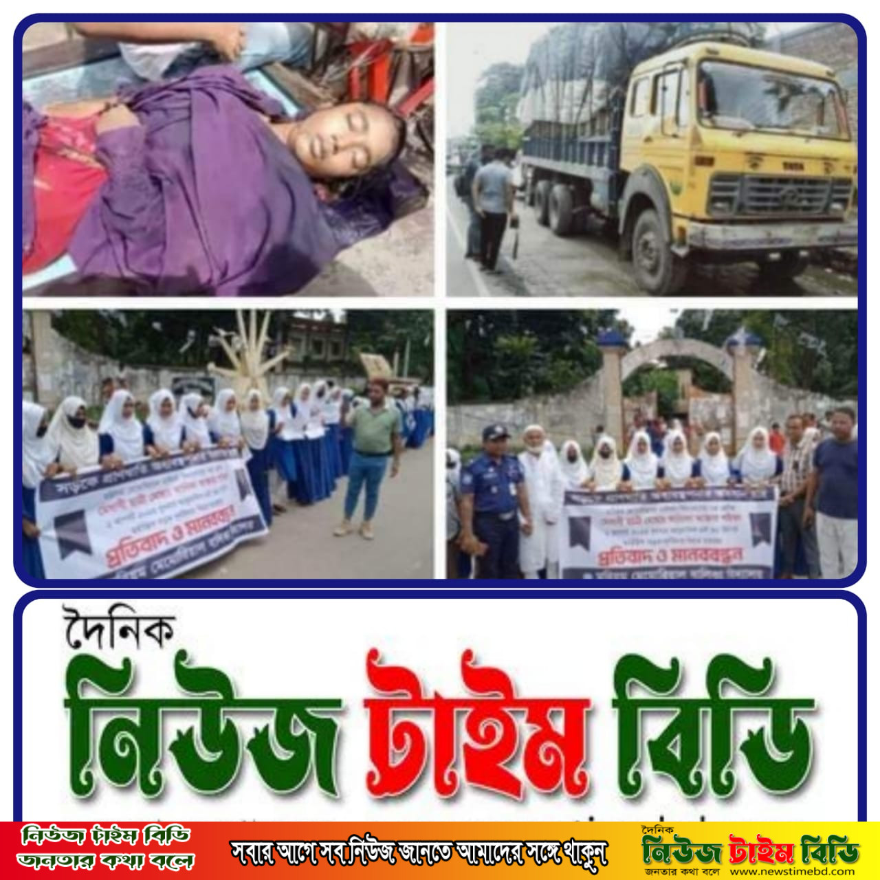 যশোরের বেনাপোলে চেকপোস্ট বড় আচড়া রোড মোড় প্রাইমারি স্কুল সংলগ্ন রাস্তা পারাপারের সময় বেনাপোল মরিয়ম মেমোরিয়াল বালিকা বিদ্যালয়ের ৭ম শ্রেণির মেধাবী ছাত্রী মোছাঃ আনিকা আক্তার শরিফা(১২)ট্রাকের চাকায় পৃষ্ঠ হয়ে নিহত।
