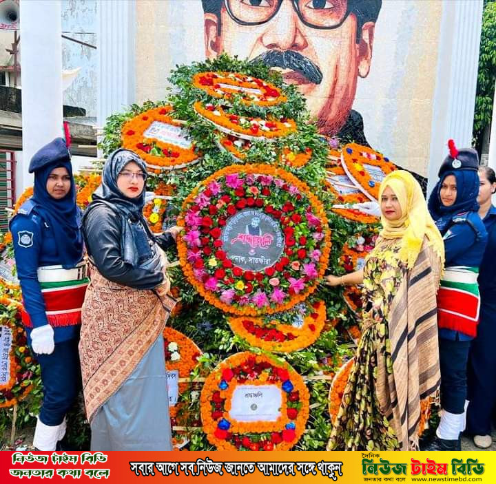 স্বাধীনতার মহান স্থপতি জাতির পিতা বঙ্গবন্ধু শেখ মুজিবুর রহমান-এঁর ৪৮তম শাহাদত বার্ষিকী ও জাতীয় শোক দিবস-২০২৩ উপলক্ষে পুনাক,সাতক্ষীরার আয়োজনে অদ্য ১৫ আগস্ট ২০২৩ খ্রিঃ তারিখে জনাব মোছাঃমরিয়ম খাতুন, সভানেত্রী,পুনাক,সাতক্ষীরার পক্ষে হাজার বছরের শ্রেষ্ঠ বাঙালি জাতির পিতা বঙ্গবন্ধু শেখ মুজিবুর রহমানের প্রতিকৃতিতে পুষ্পস্তবক অর্পণ করেন জনাব শাহনাজ সুলতানা,সাধারণ সম্পাদিকা, পুনাক, সাতক্ষীরা।