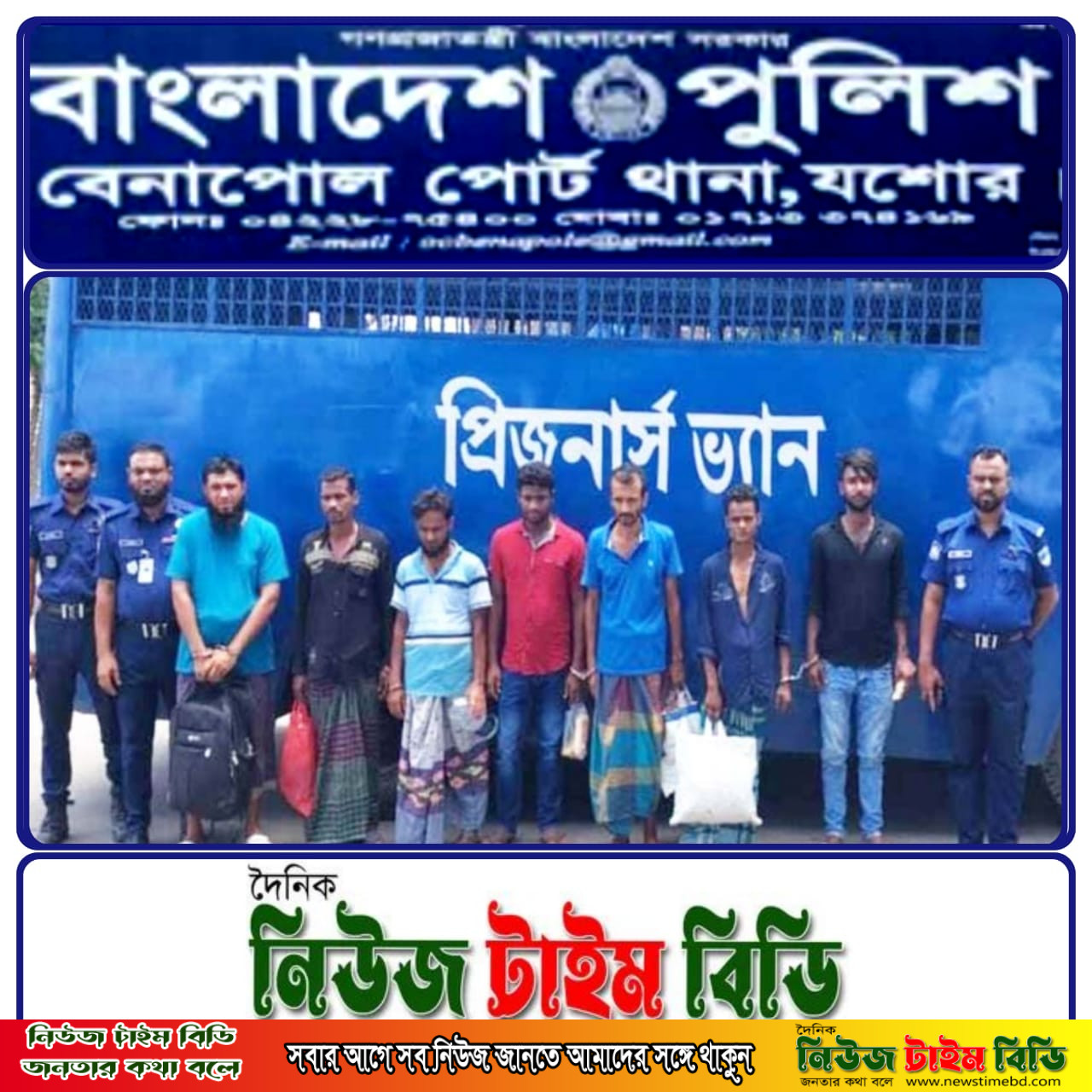 গ্রেফতারী পরোয়ানা ভুক্ত আসামী ১। মোঃ জুলফিকার (৪৫), পিতা-মৃত জাহান আল আউলিয়া, সাং-বালুন্ডা (উত্তরপাড়া), ২ । মোঃ শিমলা (২৪), পিতা-মৃ আঃ মান্নান, সাং-ছোট আচঁড়া, ৩। মোঃ ইমারুল শেখ (২১), পিতা-মো শরিফূল ইসলাম, সাং-সাদিপুর মধ্যপাড়া দাউদ মল্লিক এর বাড়ীর পার্শ্বে, ৪ । মোঃ ইমারুল (১৮), পতিা-মো শরফিূল ইসলাম, সাং-সাদপিুর পশ্চিমপাড়া, ৫। মোঃ হাফিজুর রহমান (২৫), পিতা-মোঃ আলাউদ্দিন সাং-সাদিপুর ডালিম এর বাড়ীর পার্শ্বে, ৬। মো তাইজুল ইসলাম, পিতা-মৃত সামাদ শেখ, সাং-৪ নং ঘিবা নারায়নপুর বিশ্বাসপাড়া, ৭। মোঃ জাকির হোসেন, পিতা- মৃত আবুল মোল্লা, সাং-বোয়ালয়িা, সব থানা-বেনাপোল পোর্ট জেলা-যশোরগনকে গ্রেফতার করা হয়।
