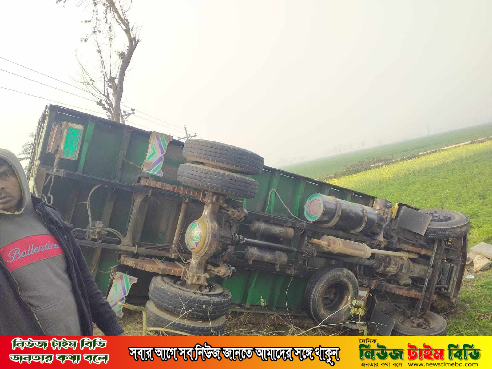 এ সময় চালক না থামিয়ে ওই গাছের ওপর দিয়ে ট্রাক চালিয়ে পার হওয়ার চেষ্টা করেন।