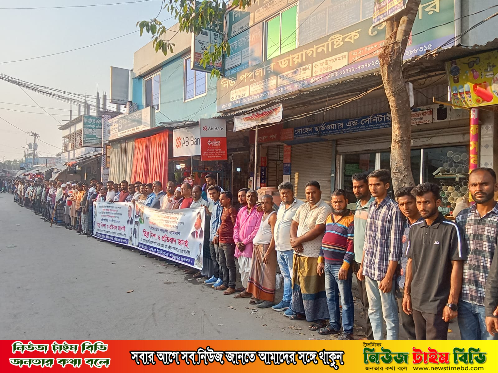 বরিশাল জেলার উজিরপুর উপজেলার হারতা ইউনিয়ন বিএনপির সাধারণ সম্পাদক মোঃ তরিকুল ইসলাম তালুকদার ও সাবেক সাংগঠনিক সম্পাদক মোঃ মহিউদ্দিন তালুকদারের উপর বর্বরোচিত সন্ত্রাসী হামলার প্রতিবাদে মানববন্ধন ও বিক্ষোভ মিছিল করেছে ইউনিয়নবাসী। ১৫ ফেব্রুয়ারি শনিবার বিকেল ৫ টায় হারতা বন্দরে হামলাকারীদের গ্রেফতার পূর্বক দৃষ্টান্ত মূলক শাস্তির দাবিতে মানববন্ধনে অংশগ্রহন করে হারতা ইউনিয়ন বিএনপির অঙ্গ ও সহযোগী সংগঠনের শত শত নেতা-কর্মীরা ও ব্যবসায়ীরা।এসময় বক্তৃতা করেন হারতা ইউনিয়ন বিএনপির সভাপতি মোঃ ফিরোজ হোসেন হাওলাদার,সিনিয়র সহ-সভাপতি মোঃ মোস্তফা কামাল, সহ-সভাপতি মোঃ আবুল কালাম আজাদ,ভারপ্রাপ্ত চেয়ারম্যান মোঃ সাইফুল ইসলাম তালুকদার,হারতা ইউনিয়ন যুবদলের আহবায়ক মোঃ শফিকুল ইসলাম তালুকদার,ইউনিয়ন স্বেচ্ছাসেবক দলের সদস্য সচিব মোঃ শিরাজুল ইসলাম। উল্লেখ্য ১৪ ফেব্রুয়ারি সন্ধ্যা সাড়ে ৬ টার দিকে সিএনজি গাড়ি যোগে হারতা ইউনিয়ন বিএনপির সাবেক সাংগঠনিক সম্পাদক মোঃ মহিউদ্দিন তালুকদার ও হারতা ইউনিয়ন বিএনপির সাধারণ সম্পাদক মোঃ তরিকুল ইসলাম তালুকদার উজিরপুর যাওয়ার উদ্দেশ্যে রওয়ানা হয়ে ওটরা ইউনিয়নের হাবিবপুর কালি মন্দিরের সামনে পৌঁছলে পরিকল্পিত তাদেরকে পথরোধ করে অতর্কিত হামলা চালায়। আহতদের স্থানীয়রা উদ্ধার করে উজিরপুর হাসপাতালে নিয়ে গেলে সেখানে কর্তব্যরত ডাঃ আহত তরিকুল ইসলাম তালুকদারকে উন্নত চিকিৎসার জন্য ঢাকা হাসপাতালে প্রেরণ করেন।আহত মহিউদ্দিন তালুকদারকে বরিশাল সেবাচিম হাসপাতালে প্রেরণ করা হয়।এ ঘটনায় আহত মোঃ তরিকুল ইসলাম তালুকদার জানান মধ্য কেশবকাঠী গ্রামের মোঃ রফিক মল্লিক,মোঃ মিজানুর রহমান,মোঃ লিটন মৃধা,মোঃ পলাশ মৃধা,খোকন মৃধা,মেহেদী মৃধা,পনির মল্লিক,খলিল মল্লিক,জুয়েল মৃধা,সোহাগ মৃধাসহ অজ্ঞাত ১০/১২ জন মিলে আমাদেরকে হত্যার উদ্দেশ্যে হাতুড়িপেটা করে নগদ অর্থ ও স্বর্ণালংকার লুটে নেয় এবং সিএনজি গাড়ি ভাংচুর করে প্রায় ৩ লক্ষাধিক টাকার ক্ষতিসাধন করেছে ওই সন্ত্রাসীরা। হামলার ঘটনায় আহত মোঃ তরিকুল ইসলাম তালুকদার বাদী হয়ে উজিরপুর মডেল থানায় উল্লেখ্য অভিযুক্তদের বিরুদ্ধে মামলা দায়ের করেন। মানববন্ধনে বক্তৃতাকালে হারতা ইউনিয়ন বিএনপির সভাপতি মোঃ ফিরোজ হাওলাদার বলেন প্রথমে ওই সন্ত্রাসীরা হারতা ইউনিয়ন পরিষদের ভারপ্রাপ্ত চেয়ারম্যান মোঃ সাইফুল ইসলাম তালুকদারের উপর পরিকল্পিত ভাবে হামলা চালায়।এর কিছুক্ষন পরেই হারতা ইউনিয়ন বিএনপির সাধারণ সম্পাদক মোঃ তরিকুল ইসলাম তালুকদার ও সাবেক সাংগঠনিক সম্পাদক মোঃ মহিউদ্দিন তালুকদারকে হত্যার উদ্দেশ্য হামলা চালায়। এছাড়া মারধর ফিরাতে গিয়ে হামলার শিকার হন হারতা ইউনিয