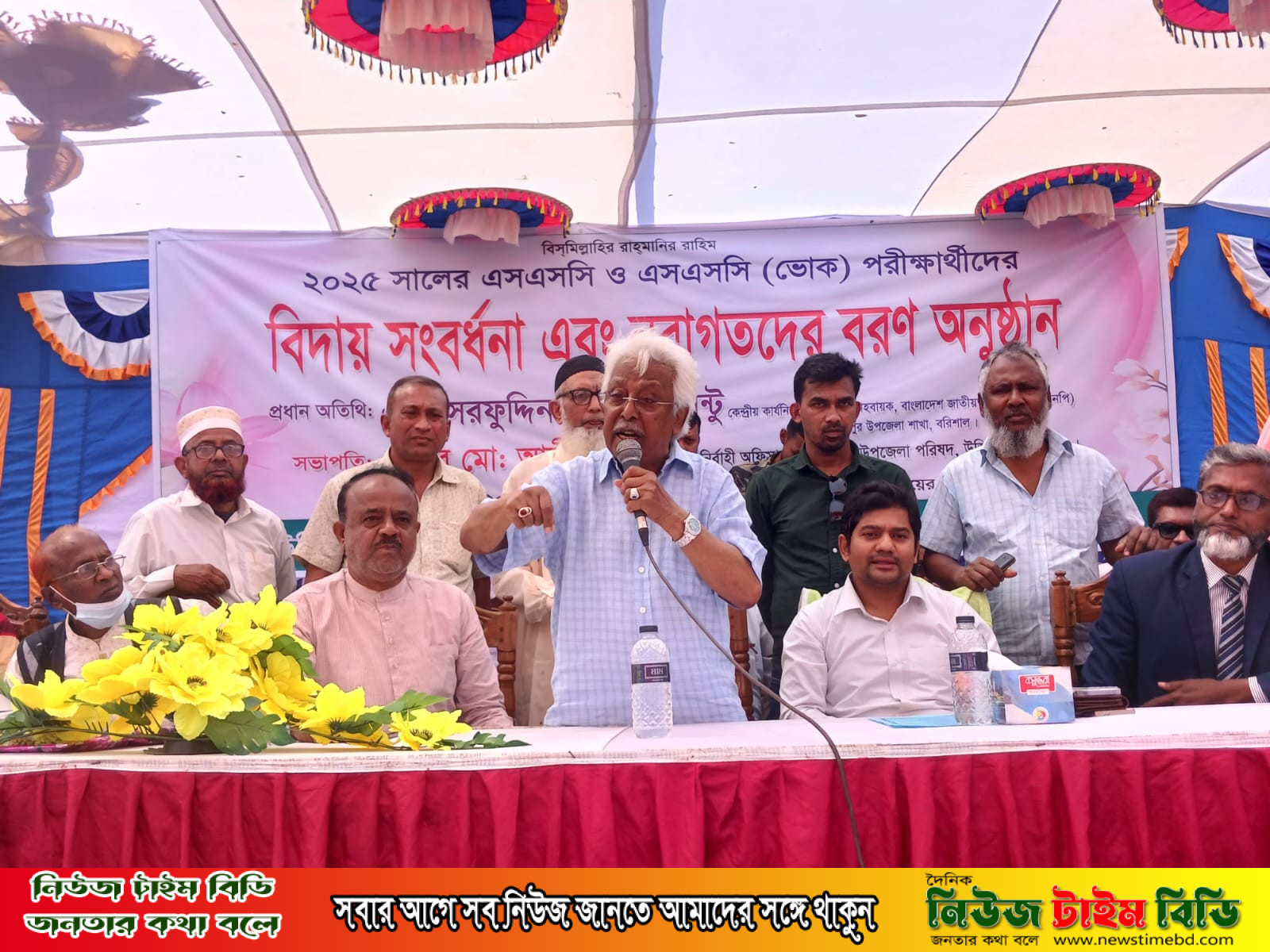 বরিশাল জেলার উজিরপুর উপজেলার সরকারি ডব্লিউবি ইউনিয়ন মডেল ইনস্টিটিউশনের ২০২৫ সালের এসএসসিওএসএসসি(ভোকেশনা)পরীক্ষার্থীদের বিদায় সংবর্ধনা ও নবাগতদের বরন অনুষ্ঠানে প্রধান অতিথির বক্তৃতা করেন বিএনপির কেন্দ্রীয় কমিটির সদস্য,বরিশাল জেলা দক্ষিণ বিএনপির যুগ্ম আহ্বায়ক ও উজিরপুর উপজেলা বিএনপির আহবায়ক এস সরফুদ্দিন আহমেদ সান্টু।২৫ ফেব্রুয়ারি মঙ্গলবার সকাল ১১টায় উজিরপুর সরকারি ডব্লিউবি ইউনিয়ন মডেল ইনস্টিটিউশনের মাঠ প্রাঙ্গণে উপজেলা নির্বাহী কর্মকর্তা মোঃ আলী সুজার সভাপতিত্বে ও শিক্ষক রিয়াজুল ইসলাম তালুকদার ও শিক্ষিকা সেলিনা আক্তারের সঞ্চালনায় উপস্থিত ছিলেন উজিরপুর পৌর বিএনপির আহবায়ক মোঃ শহিদুল ইসলাম খান,উপজেলা বিএনপির যুগ্ম আহ্বায়ক মোঃ সরোয়ার হোসেন,সরদার সিদ্দিকুর রহমান, পৌর বিএনপির সদস্য সচিব মো: রোকনুজ্জামান টুলু,যুগ্ম আহবায়ক মোঃ ইদ্রিস বালী, মোঃ গিয়াস উদ্দিন আকন, মোঃ হেমায়েত উদ্দিন খলিফা,বড়াকোঠা ইউনিয়ন বিএনপির সাধারণ সম্পাদক মো: রফিকুল ইসলাম খোকন, উপজেলা স্বেচ্ছাসেবক দলের আহবায়ক মোঃ মাহবুব গোমস্তা,পৌর যুবদলের আহবায়ক মোঃ সাহাবুদ্দিন আকন সাবু,সদস্য সচিব মোঃ হাফিজুর রহমান প্রিন্স,উপজেলা শ্রমিক দল নেতা মোঃ সোলায়মান হোসেন হাইয়ুম খান,পৌর সেচ্ছাসেবক দলের যুগ্ন আহবায়ক মোঃ মেহেদি হাসান ভূইয়া,প্রধান শিক্ষক মোঃ শাহে আলম,সাবেক প্রধান শিক্ষক আব্দুল হালিম,শিক্ষক মোঃ মনিরুজ্জামান লিখন,উপজেলা যুবদল নেতা মোঃ শাহাদুজ্জামান কমরেড,বানারীপাড়া উপজেলা যুবদলের আহবায়ক মোঃ সুমন হাওলাদার,উজিরপুর প্রেসক্লাবের ভারপ্রাপ্ত সভাপতি মোঃ এমদাদুল কাশেম সেন্টু,সাধারণ সম্পাদক মোঃ নাসির উদ্দিন শরীফসহ বিভিন্ন সামাজিক ও রাজনৈতিক নেতৃবৃন্দ।এছাড়া মানপত্র পাঠ করে শিক্ষার্থী আদিবা নাফিসা। এসময় প্রধান অতিথি বিভিন্ন দিক নির্দেশনা মূলক আলোচনা করেন।