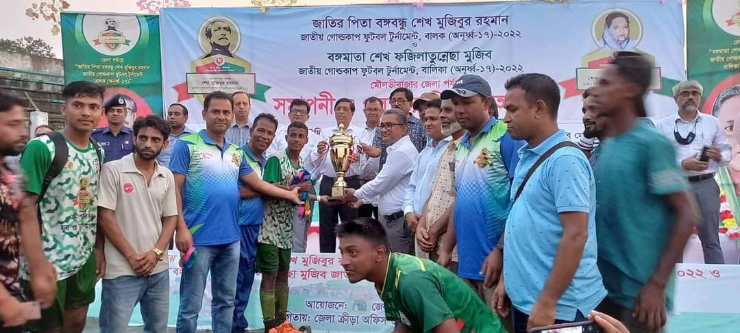 বঙ্গমাতা শেখ ফজিলাতুন্নেছা মুজিব জাতীয় গোল্ডকাপ ফুটবল টুর্নামেন্ট অনুর্ধ্ব ১৭ ফুটবলে মৌলভীবাজার জেলা চ্যাম্পিয়ন হয়েছে কুলাউড়া উপজেলা বালক ও বালিকা দল। বৃহস্পতিবার (২ জুন) মৌলভীবাজার স্টেডিয়ামে অনুষ্ঠিত ফাইনাল খেলায় কুলাউড়া বালিকা দল ট্রাইবেকারে ৪-৩ গোলে মৌলভীবাজার সদর উপজেলা দলকে পরাজিত করে। নির্ধারিত সময় গোলশূণ্য ড্র হলে খেলা গড়ায় ট্রাইবেকারে। এর আগে সেমিফাইনালে তারা বড়লেখা উপজেলাকে ১-০ গোলে হারিয়ে ফাইনাল খেলার যোগ্যতা অর্জন করেছিলো। বালকদের ফাইনাল খেলায় কুলাউড়া উপজেলা দল ট্রাইবেকারে মৌলভীবাজার সদর উপজেলা দলকে ট্রাইবেকারে ৪-৩ গোলে হারিয়ে চ্যাম্পিয়ন হওয়ার গৌরব অর্জন করে। সেমিফাইনালে কুলাউড়া উপজেলা দল ১-০ গোলে শ্রীমঙ্গল উপজেলা দলকে হারিয়ে ফাইনাল থেলার যোগ্যতা অর্জণ করেছিলো। খেলা শেষে চ্যাম্পিয়ন বালক ও বালিকা দলের হাতে পুরস্কার তুলে দেন ক্রীড়া অধিদপ্তরের সচিব মেজবাহ উদ্দিন। এসময় উপস্থিত ছিলে মৌলভীবাজার জেলা ক্রীড়া সংস্থার সভাপতি ও জেলা প্রশাসক মীর নাহিদ আহসান, জেলা ক্রীড়া সংস্থার সাধারণ সম্পাদক ও জেলা পরিষদ প্রশাসক মিসবাউর রহমান ও কুলাউড়া উপজেলা নির্বাহী অফিসার এ টি এম ফরহাদ চৌধুরী ও পৌরসভার মেয়র সিপার উদ্দিন আহম
