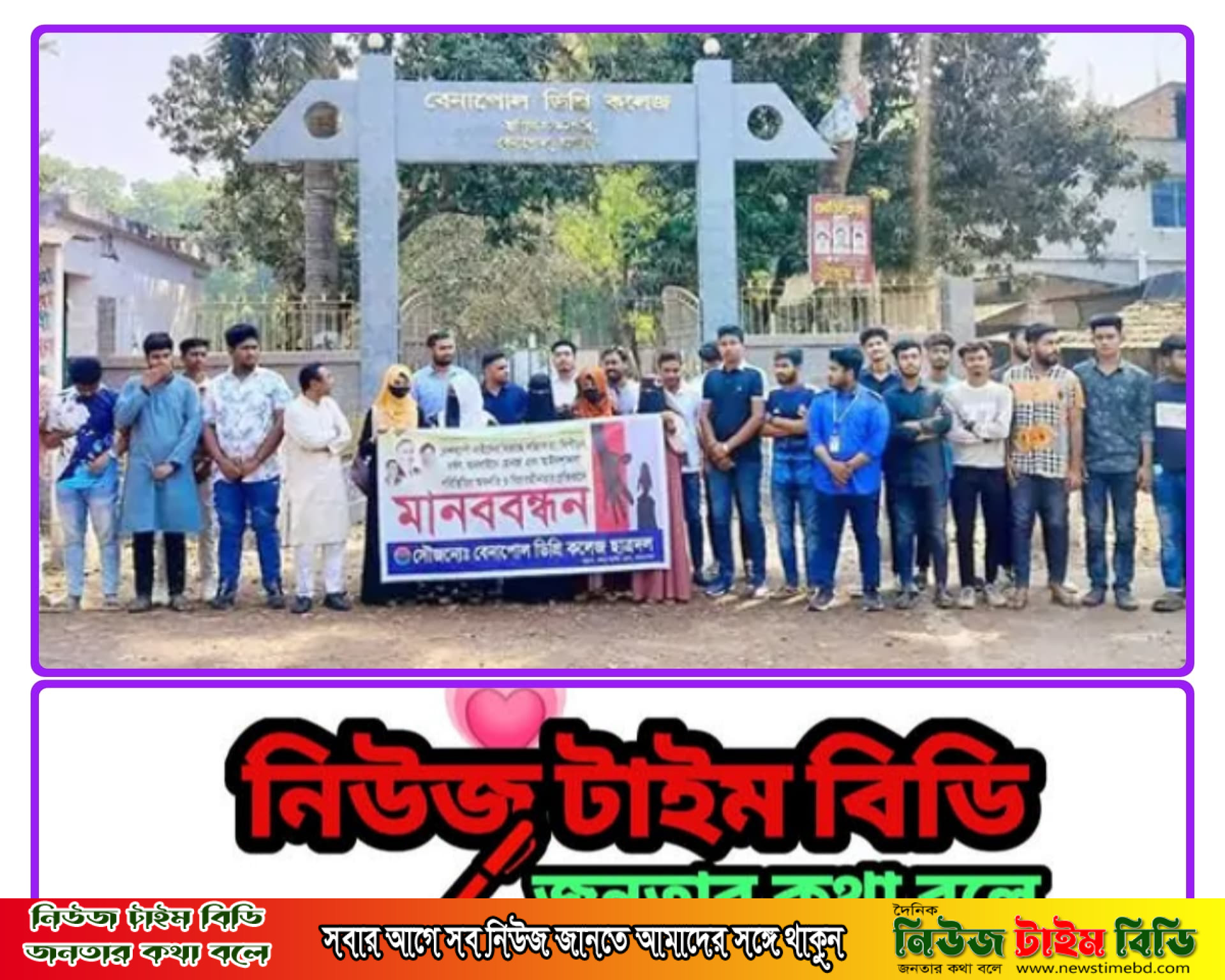 দেশব্যাপী নারীদের বিরুদ্ধে সহিংসতা, নিপীড়ন, ধর্ষণ, অনলাইনে হেনস্থা এবং বিচারহীনতার প্রতিবাদে বাংলাদেশ জাতীয়তাবাদী ছাত্রদলের কেন্দ্রীয় কর্মসূচির অংশ হিসেবে যশোরের বেনাপোল ডিগ্রি কলেজ ছাত্রদল মানববন্ধন কর্মসূচি পালন করে।