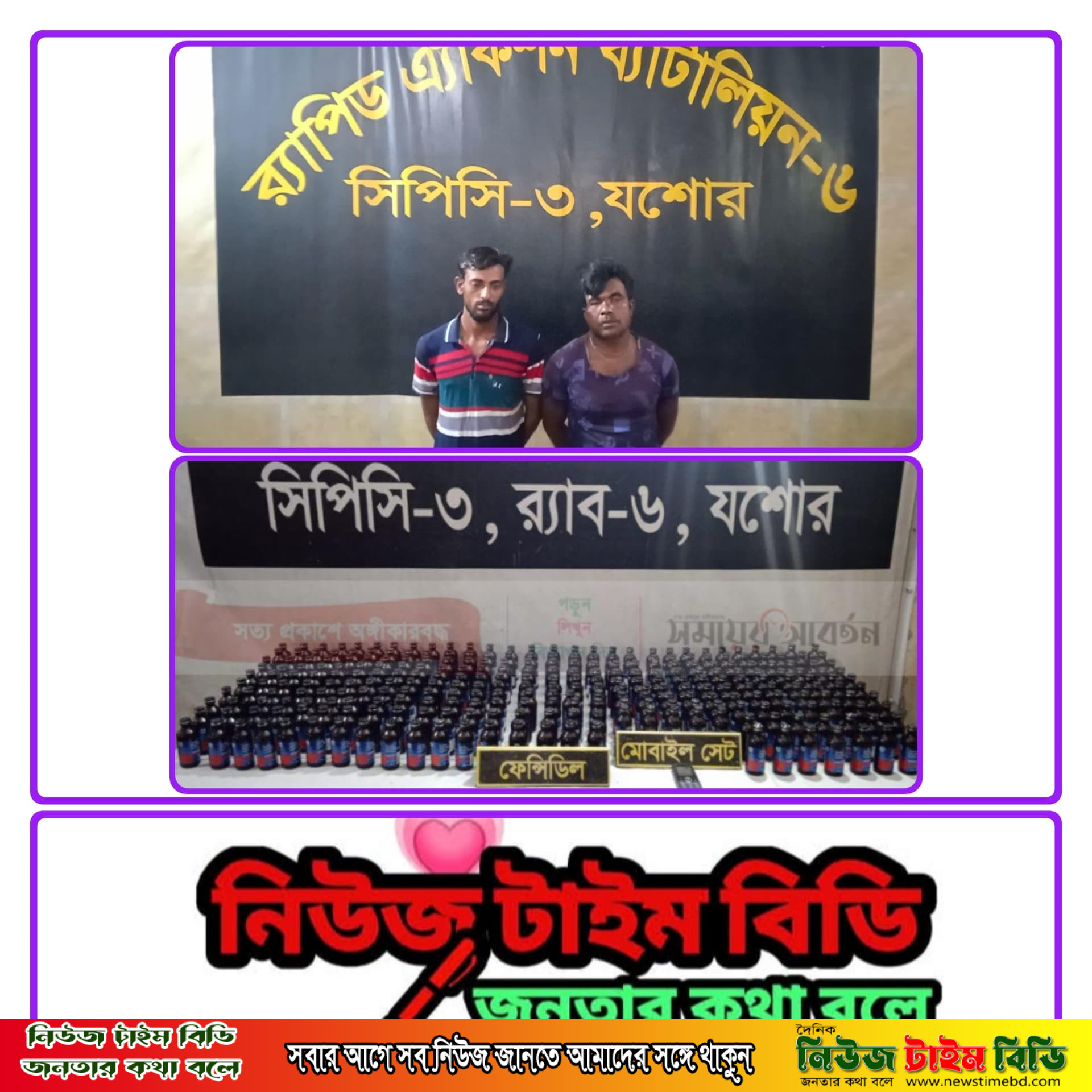 যশোর জেলার শার্শা উপজেলার নিজামপুর ইউনিয়নের শ্রীকোনা গ্রাম হতে ২৯৬ বোতল ফেন্সিডিল সহ একরামুল(২৪) ও রঞ্জন দাস(৩৯) নামের দুই মাদক বিক্রেতাকে গ্রেফতার করেছে র্যাব-৬ যশোর।