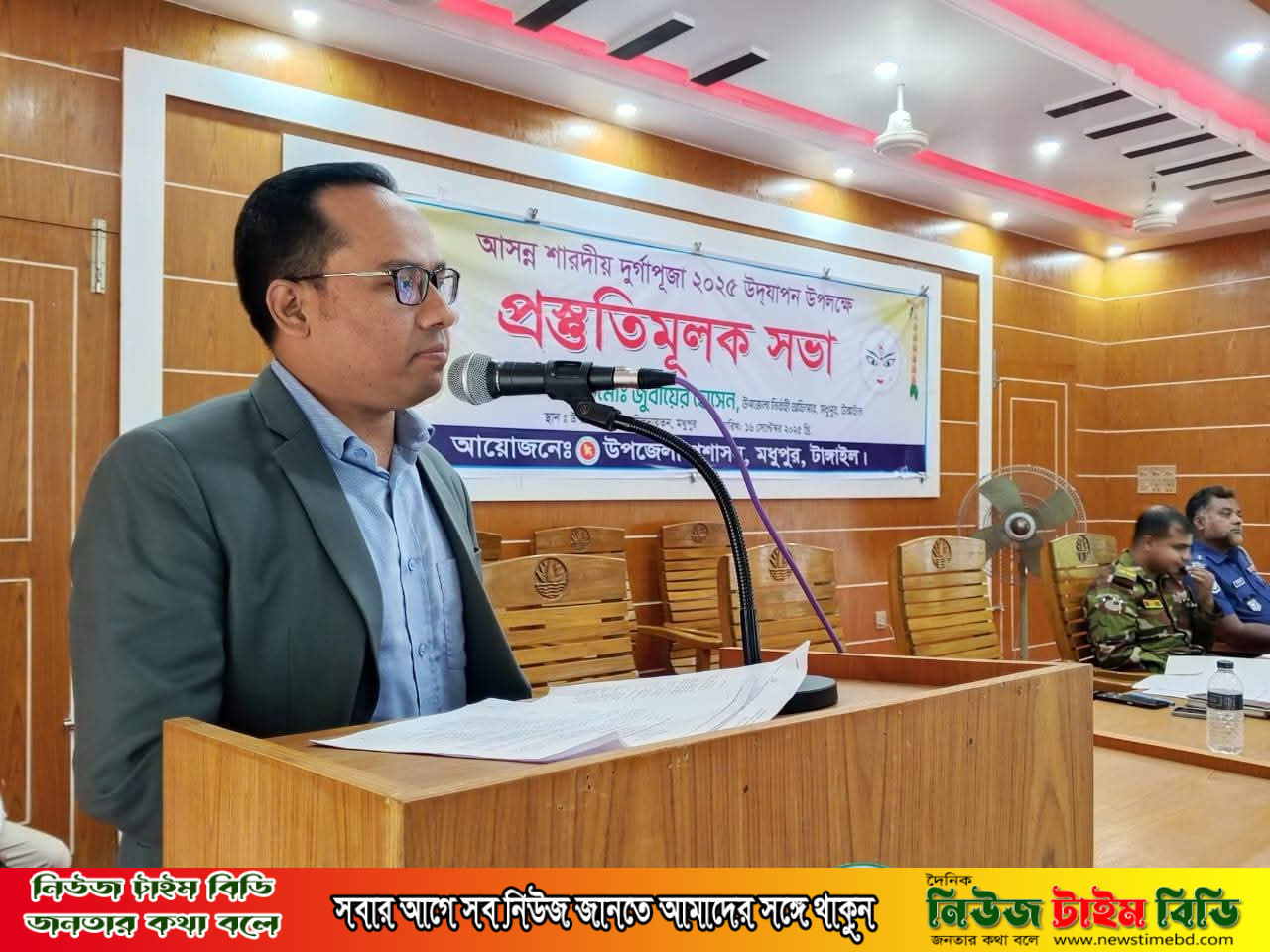 টাঙ্গাইলের মধুপুরে আসন্ন দুর্গাপূজা উদযাপন উপলক্ষে প্রস্তুতিমূলক সভা অনুষ্ঠিত হয়েছে।