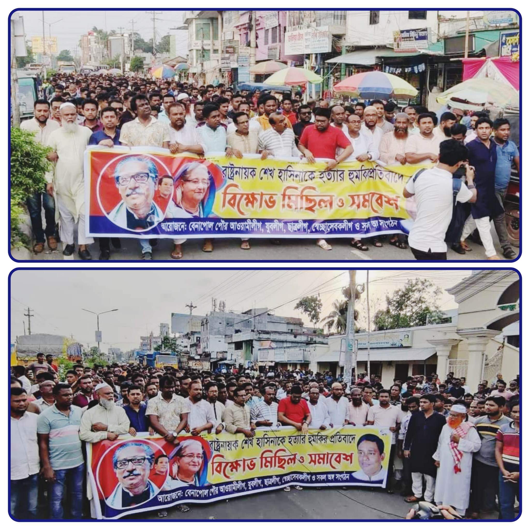 প্রধানমন্ত্রী শেখ হাসিনাকে হত্যার হুমকির প্রতিবাদে বিক্ষোভ মিছিল ও প্রতিবাদ সমাবেশ করেছেন শার্শা উপজেলা আওয়ামী লীগ।