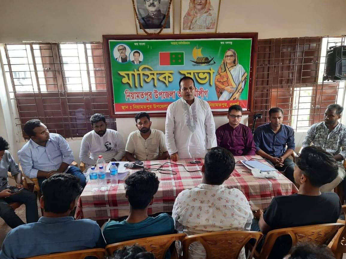 নওগাঁর নিয়ামতপুরে উপজেলা ছাত্রলীগের প্রস্তুতি কমিটির পরিচিতি সভা অনুষ্ঠিত হয়েছে। বৃহস্পতিবার দুপুরে উপজেলা আওয়ামী লীগের কার্যালয়ে এ পরিচিত সভা অনুষ্ঠিত হয়। যুগ্ম আহ্বায়ক আব্দুল্লাহ আল বাকির সঞ্চালনায় সভায় সভাপতিত্ব করেন উপজেলা ছাত্রলীগের আহ্বায়ক জাহাঙ্গীর আলম ও কলেজ ছাত্রলীগের আহ্বায়ক আশিকুজ্জামান। প্রধান অতিথি হিসেবে বক্তব্য রাখেন উপজেলা আওয়ামী লীগের সাধারণ সম্পাদক জাহিদ হাসান বিপ্লব। এ সময় আরও উপস্থিত ছিলেন যুগ্ম আহবায়ক জাহিদ হাসান চৌধুরী রিপন, কলেজ যুগ্ম আহবায়ক সঞ্জয় চন্দ্র, রাজশাহী মহানগর ছাত্রলীগের সদস্য শিহাব সবুজ সহ উপজেলা ও কলেজ ছাত্রলীগের বিভিন্ন পর্যায়ের নেতৃবৃন্দ।