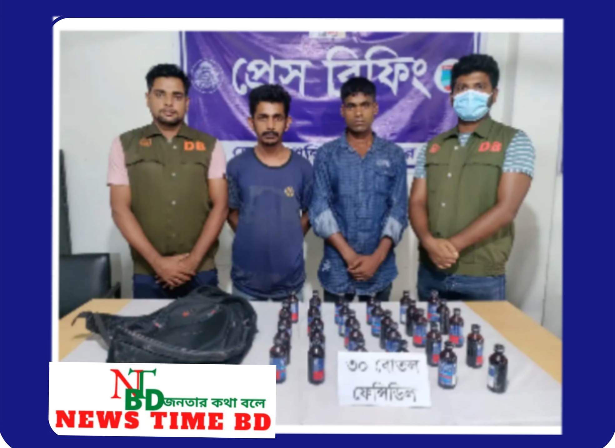 পুলিশ জানায়, মাদক বেচাকেনার গোপন খবরে, ডিবি যশোরের এসআই আরিফুল ইসলাম সংগীয় ফোর্সের সমন্বয়ে একটা চৌকস টিম নিয়ে যশোর টু বেনাপোলগামী সড়কের নাভারন মোড়স্থ সোহাগ পরিবহন কাউন্টারের সামনে হতে অভিযান চালিয়ে ৩০ বোতল ফেনসিডিল সহ তাদের আটক করে।